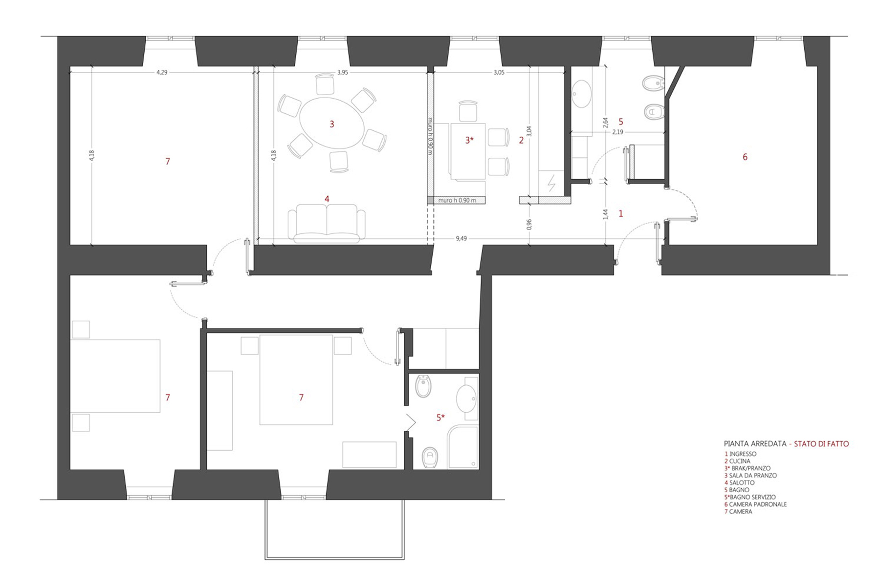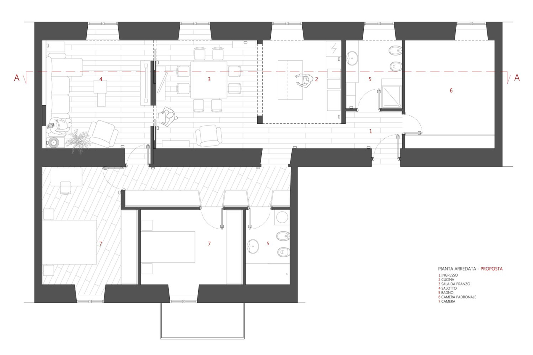 Il progetto nasce dall’esigenza della famiglia romana di cambiare gli spazi interni della propria casa, perché dopo l’arrivo a Roma da circa quindici anni, molti sono stati i cambiamenti vissuti e con gli anni anche le esigenze sono cambiate. Il progetto si sviluppa attorno ad un piatto di bucatini Amatriciana con un intensa chiacchierata sui progetti, le aspettative per il futuro e alla volontà di dare una forte cambiamento alla propria vita che parta prima di tutto dal luogo di tutti i giorni, la casa.