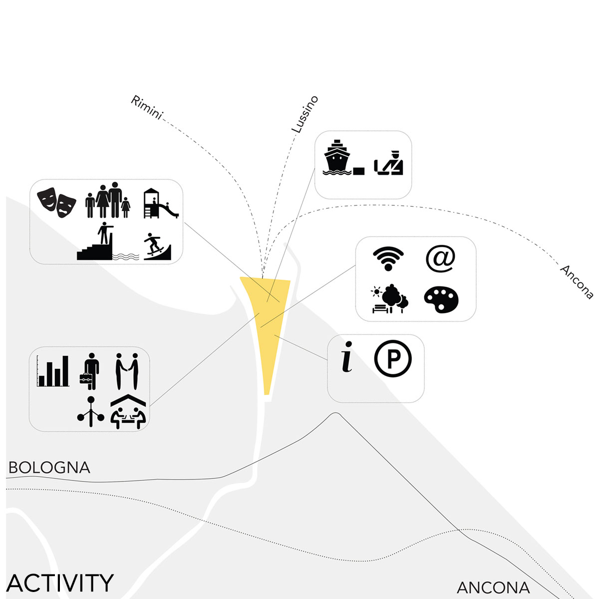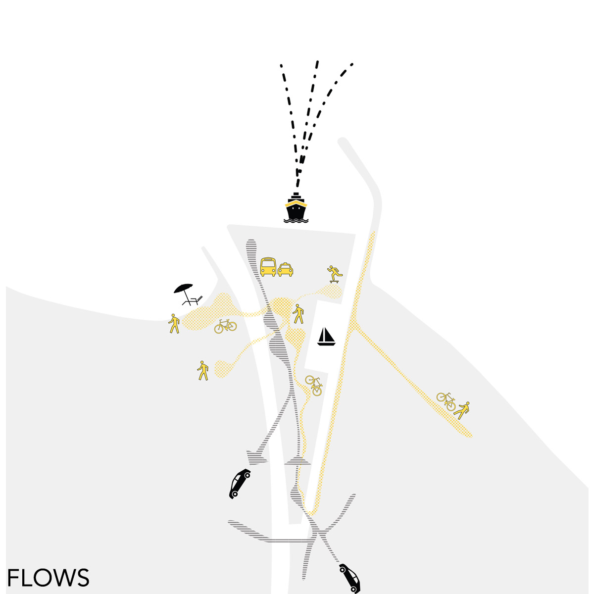 The Island : A dream like place, a refuge, a necessity. The utopic research of “The Island” triggers the need to find an idividual and alternative space, where everyone can recreate and start again. The Island is a dream place where each and every person can take refuge, letting go of their thoughts and freeing their ideas. The creative process includes, a sometimes uninteligable discovery that sparks and generates an idea, but very often it’s connected to experiences in it’s own world, the places we live in. The relationship with the places that surround us merges inseparably with our experience, generating the creative spark. The former area of the shipyards is a hybird place between land and sea, not projected to become a utopian place, but a real space where the creative process can be triggered in every one of us. The life of the port, the creative activity of co-workers, the local restaurants and entertainment, revolve around a public space capable of hosting musical events, social and cultural experiences on the Island 24 hours a day. This is the place that we thought, a space for man: THE ISLAND.